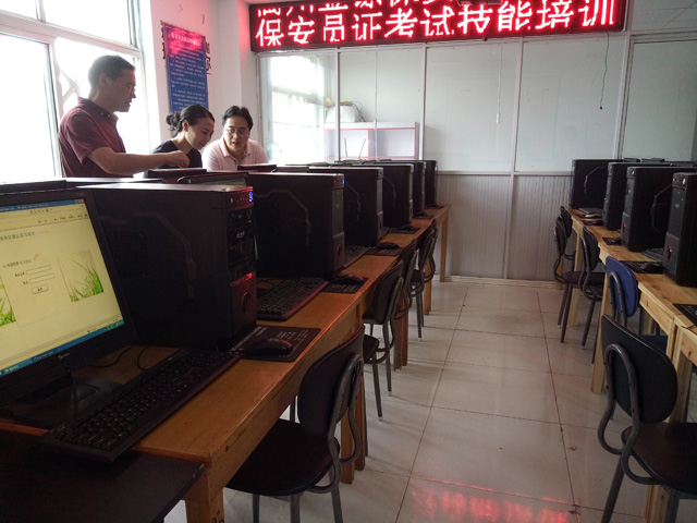 为切实落实《最多跑一次》便民工作,2018年6月12日,衢州市公安局保安监管部门邀请省陈工程师,一同到衢州市金镖保安培训学校安装保安员指纹采集仪及新版保安员证录入考试系统,保安监管大队与陈工,首先全面了解了金镖保安培训学校近年来组织保安员培训考证情况与保安监管系统的使用情况,以及工作中遇到的相关问遇。然后,用了近4个小时时间,耐心细致地为金镖保安培训学校40多台电脑,安装好保安员指纹采集仪与新版保安员证考试系统,把保安员考证从指纹采集到培训考试有机结合在一起,做到一条龙服务,这样切实解决了以往保安员考取保安员证分阶段进行的现象。大大方便了保安从业单位与广大保安员培训考证工作,实现了最多跑一次的承诺。